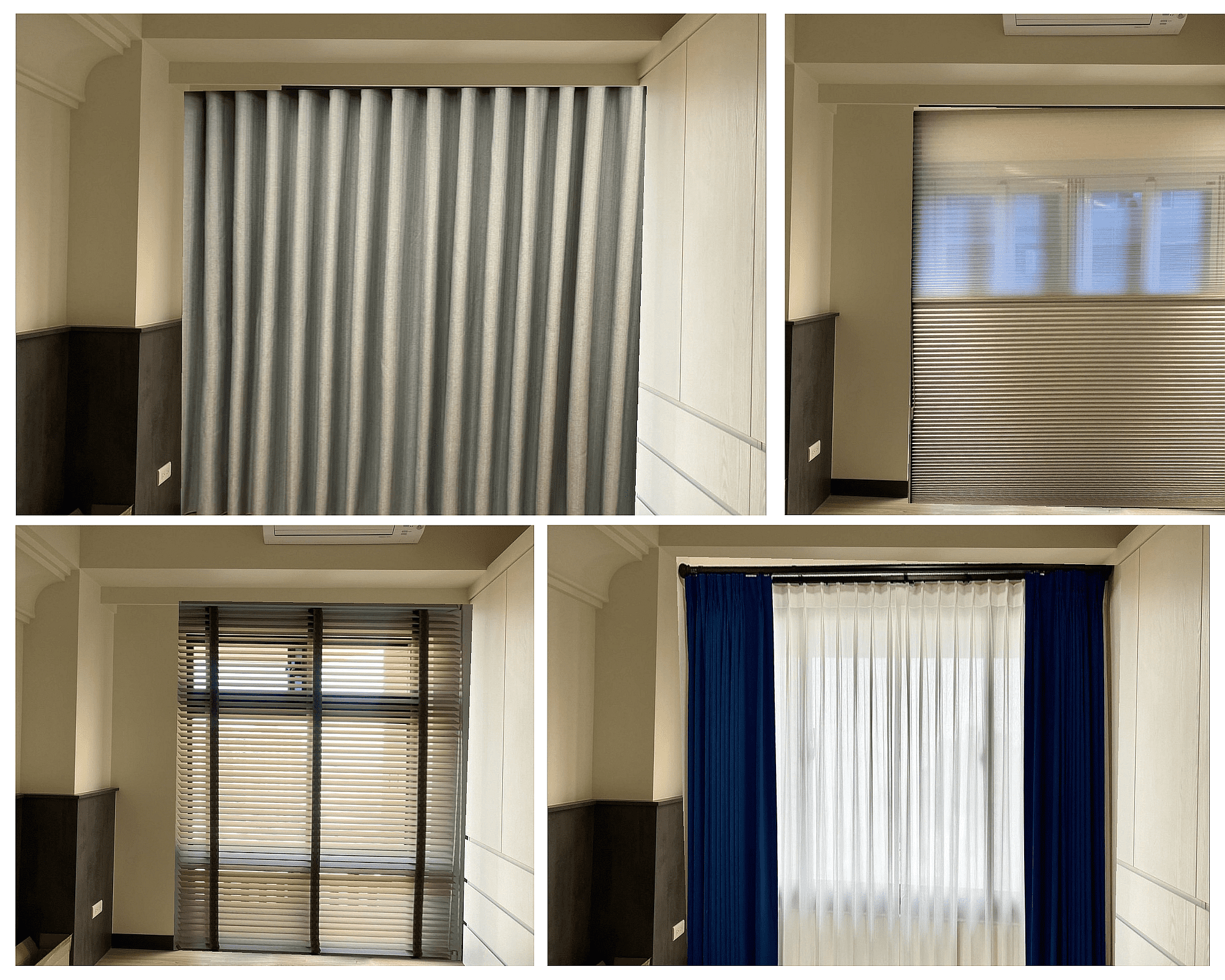 調光捲簾、羅馬簾、柔紗簾、木百葉簾、