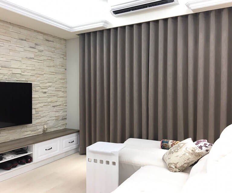 蛇型簾顧名思義是將窗簾布以蛇型(前後S型)方式呈現其立體感與垂度感,跟一般的打摺窗簾比較起來,蛇型簾縮小了摺距並增加了用布量以加深摺深效果,使得整體外觀更具質感。蛇簾式最為優雅的布簾呈現方式,他完美的弧度吸引了不少人,大部分高級飯店的布簾呈現方式大多為蛇簾,蛇簾的完美弧度依布品的選擇不同而有不同效果,太厚或太薄的效果都不如適當厚度的窗簾布呈現起來的弧度會較為完美。在選擇蛇型簾做為居家窗簾時較需注意到木工裝潢部分。建議您在有製作窗簾盒的前提下再選擇蛇型簾做法。建議各位在木工裝潢前洽詢沐爾免費諮詢丈量。