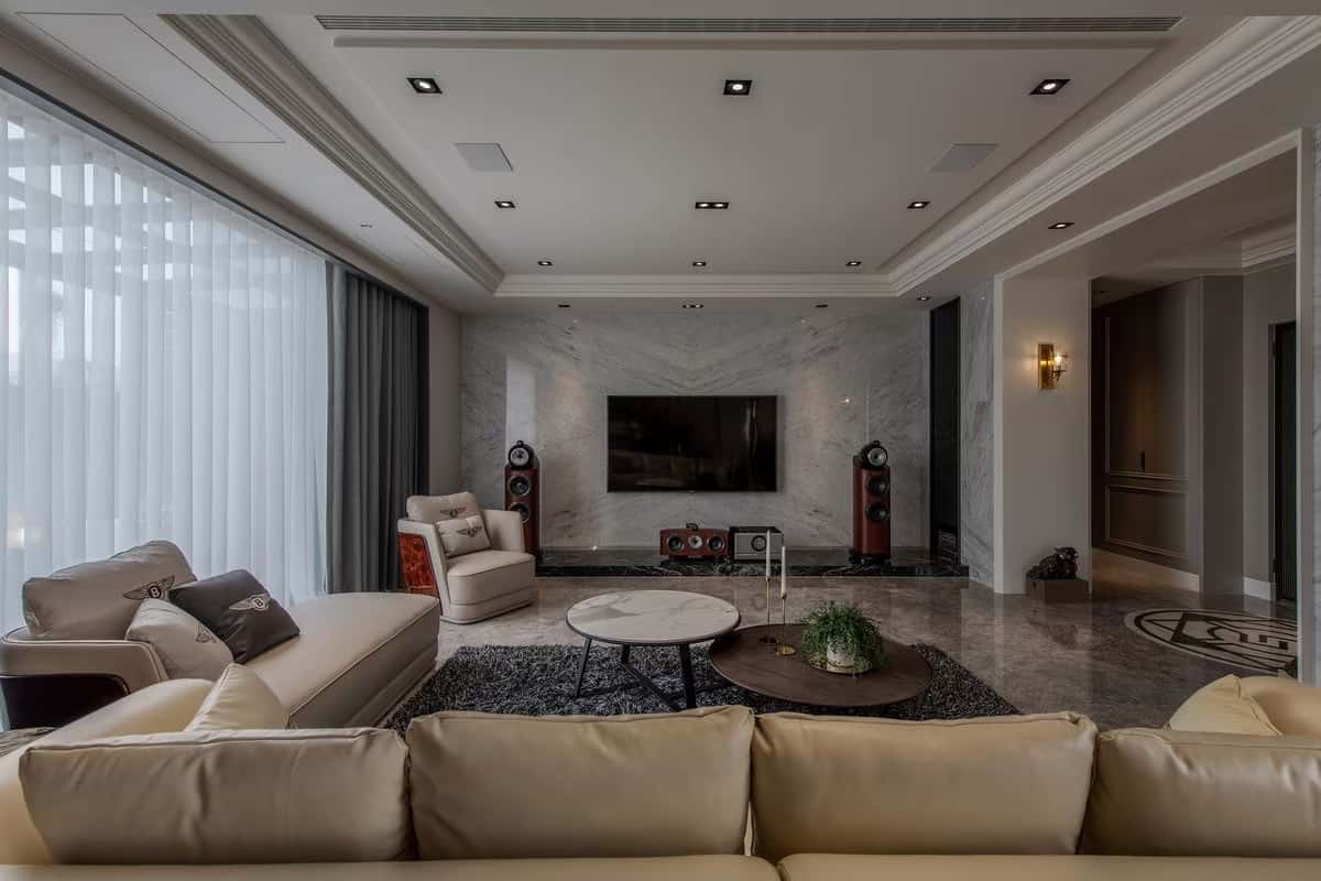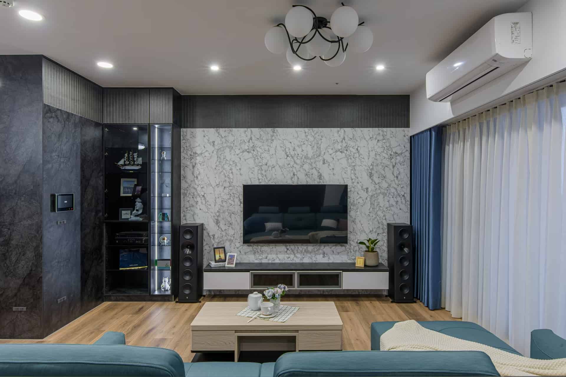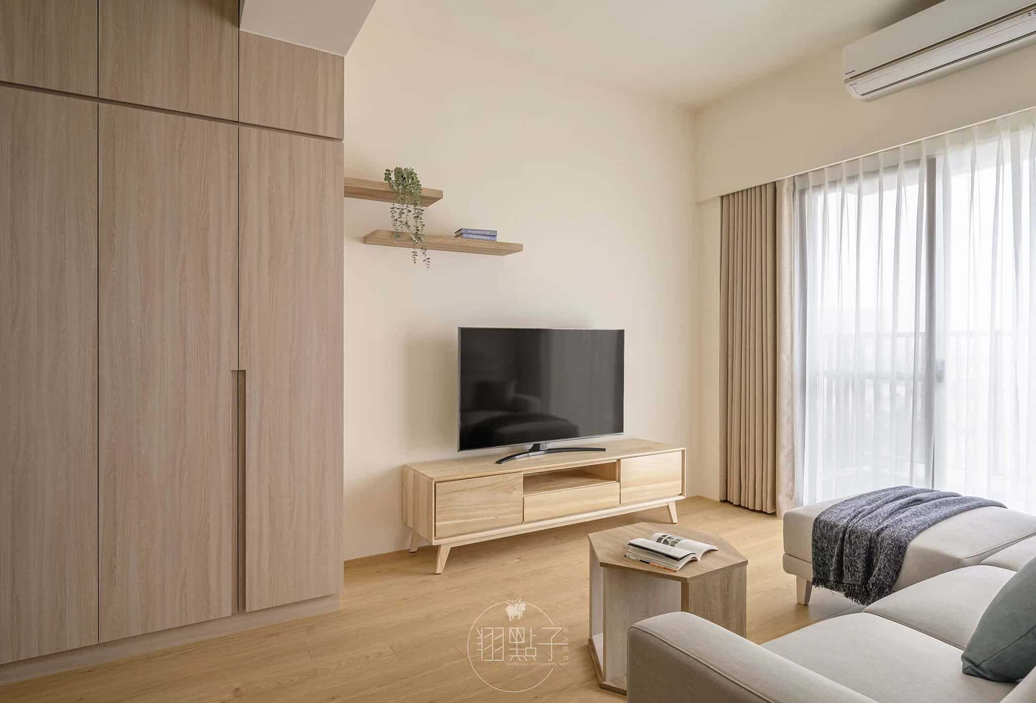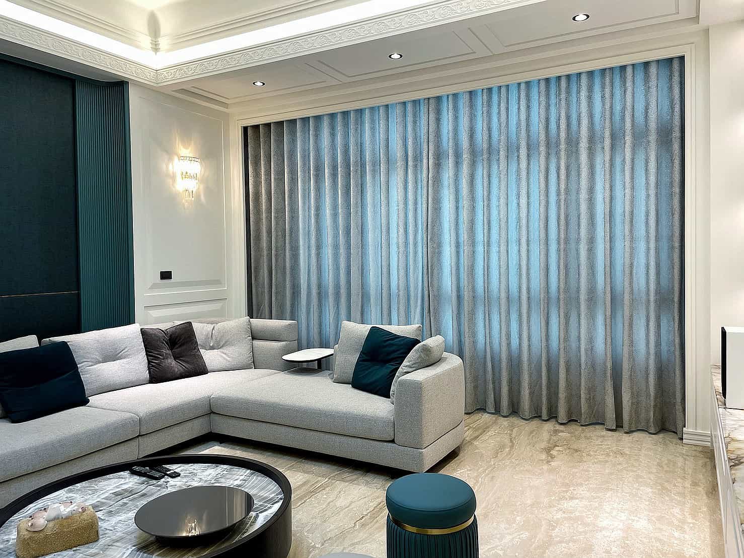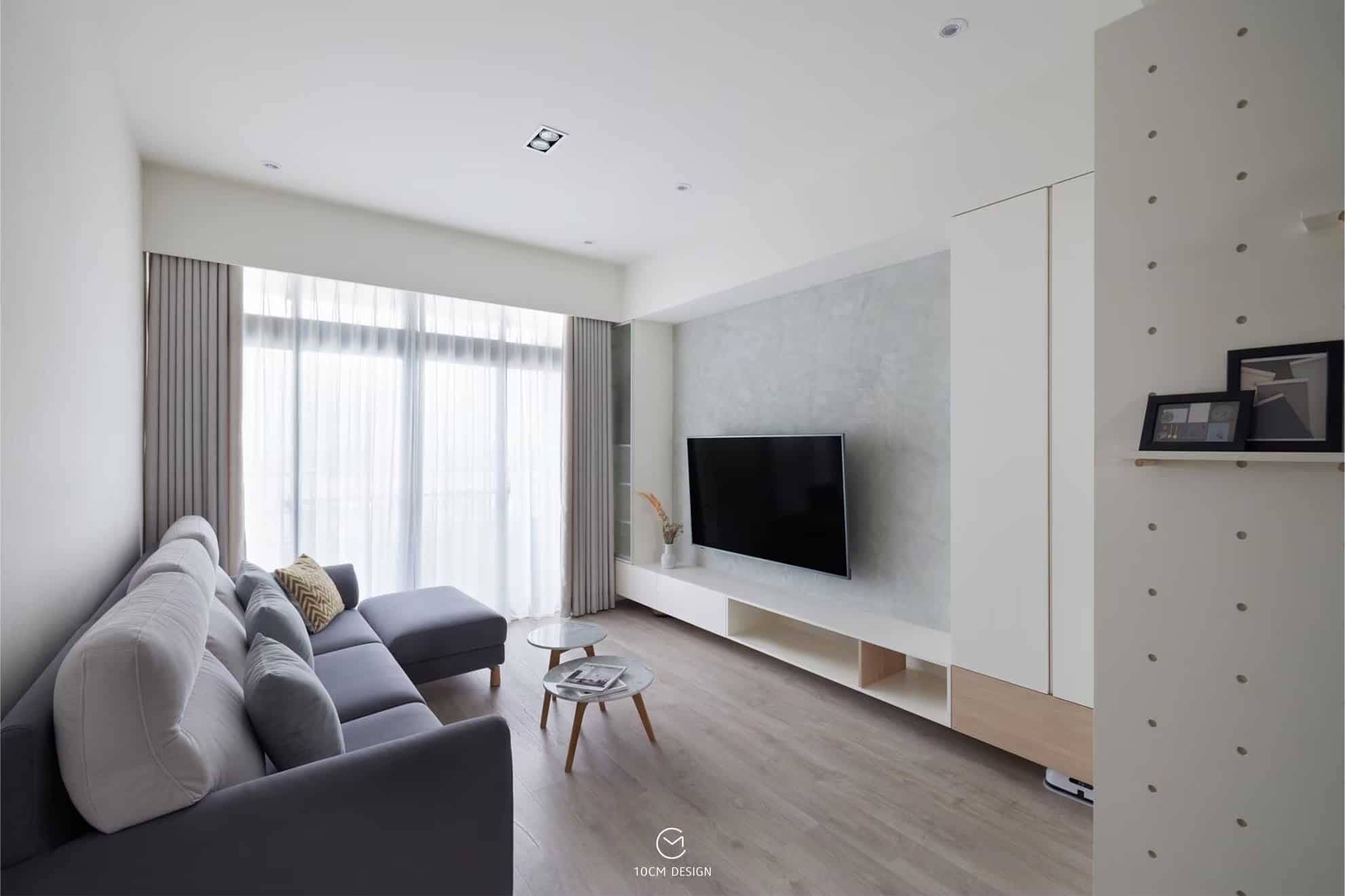 窗簾布料色彩非常多,容易跟沙發和電視牆以及其它系統櫃體做搭配。