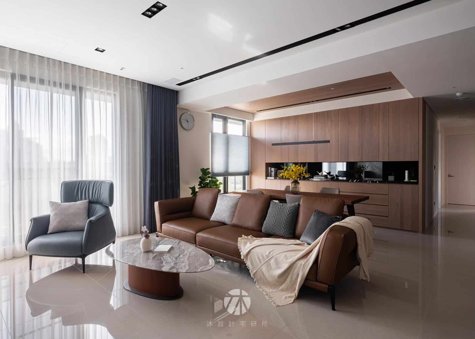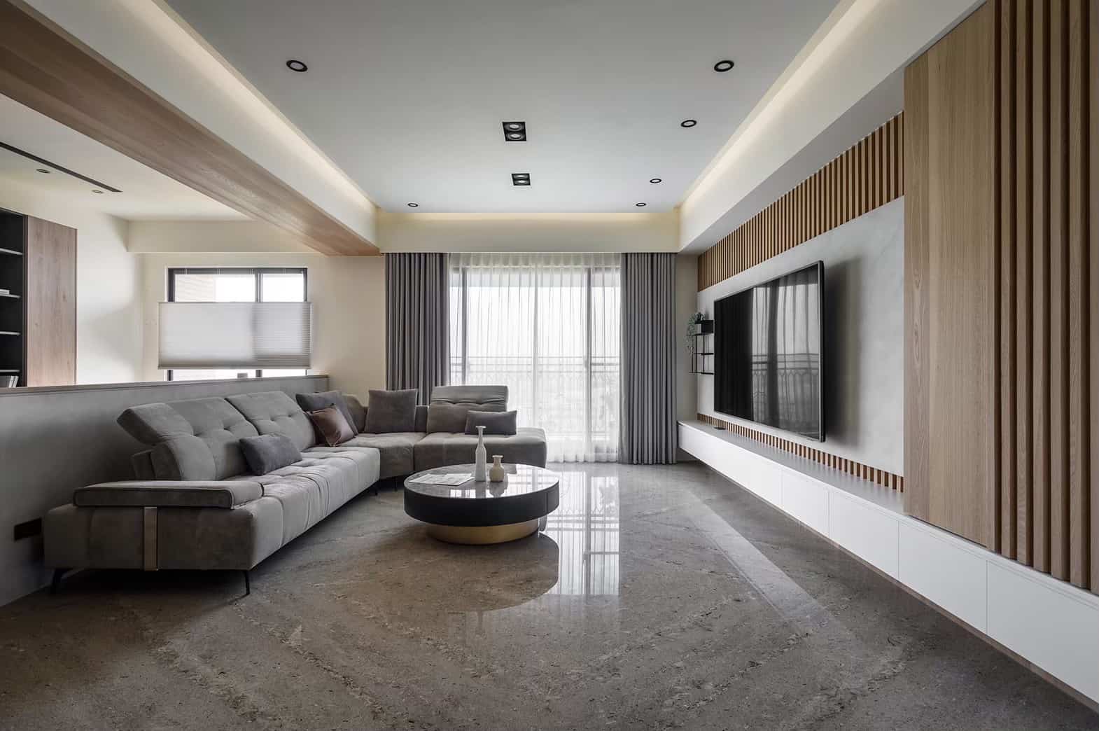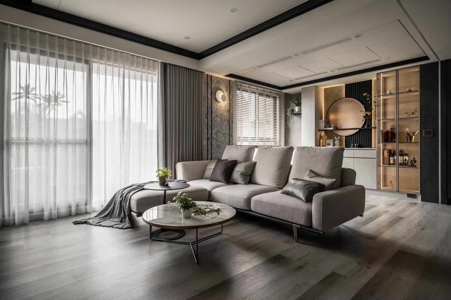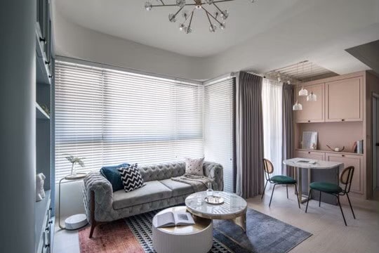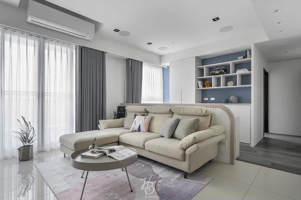 如果是棟距很近的大樓,客廳採光通常不會太好,在選擇窗簾布料時,會建議採用半透光或者透光的布料,保持室內明亮,避免造成客廳太暗