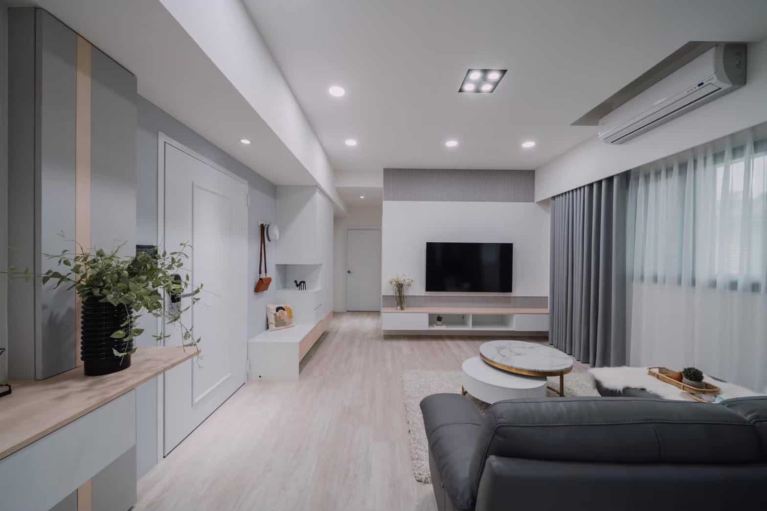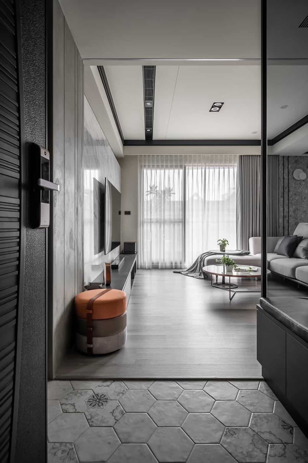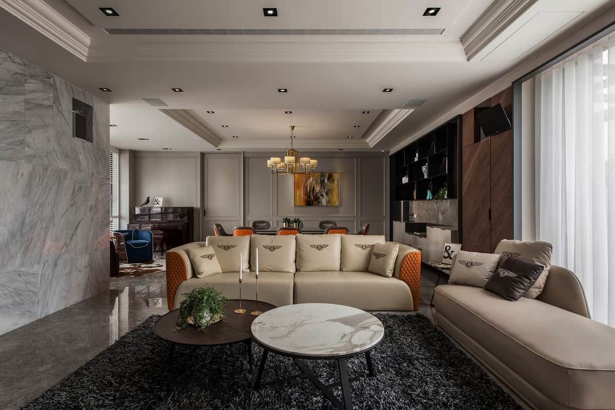 如果是棟距很近的大樓,客廳採光通常不會太好,在選擇窗簾布料時,會建議採用半透光或者透光的布料,保持室內明亮,避免造成客廳太暗