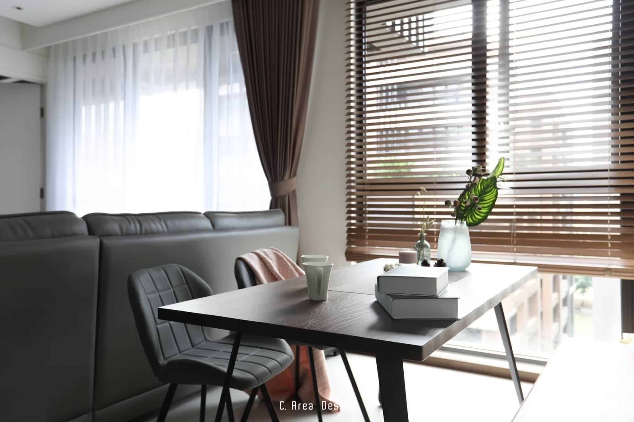 客廳適合明亮且有更多元的採光及調光,百葉簾能給空間帶來溫馨的光影效果,在遮蔽隱私的同時也能保留採光及通風。