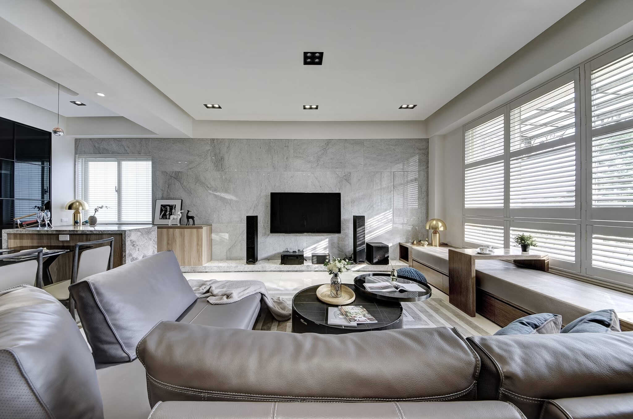 此外,百葉窗可調節葉片角度,讓新鮮空氣流通,保持客廳空氣清新,有助於營造健康的生活環境。客廳經常接待客人,百葉窗可控制外界視線,提供隱私保護,同時不影響室內光線。