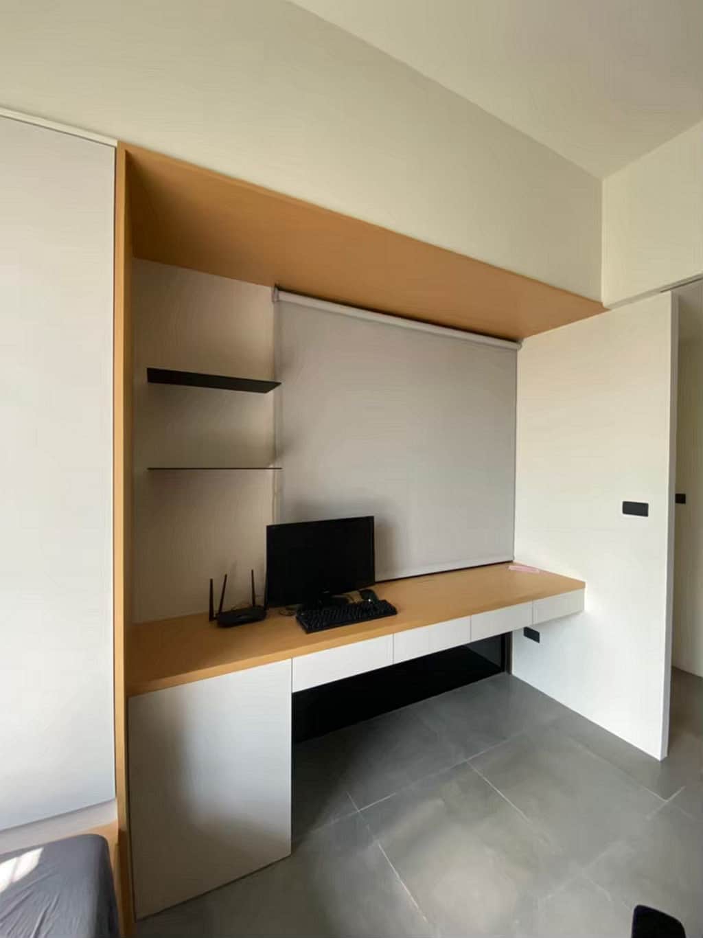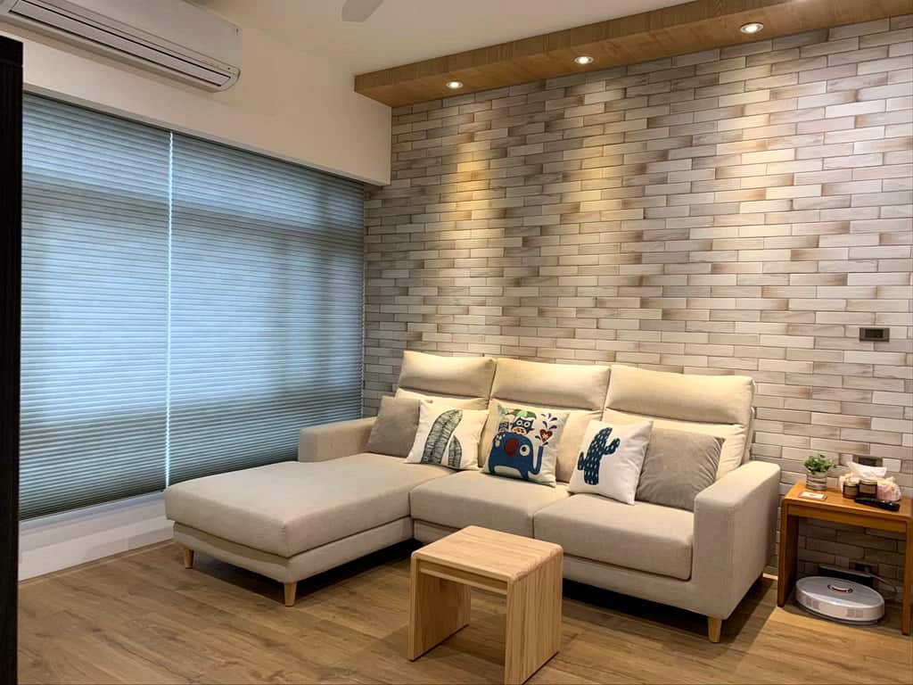 調光簾的便利性很高,可以自行調整自己想要的光線位置,收納上也很便利,以一層遮光布片一層紗網混織而成,達到採光跟隱私兼顧的效果,表面防塵聚酯纖維製成好清潔,不易生塵螨,適合過敏家庭。調光簾作品