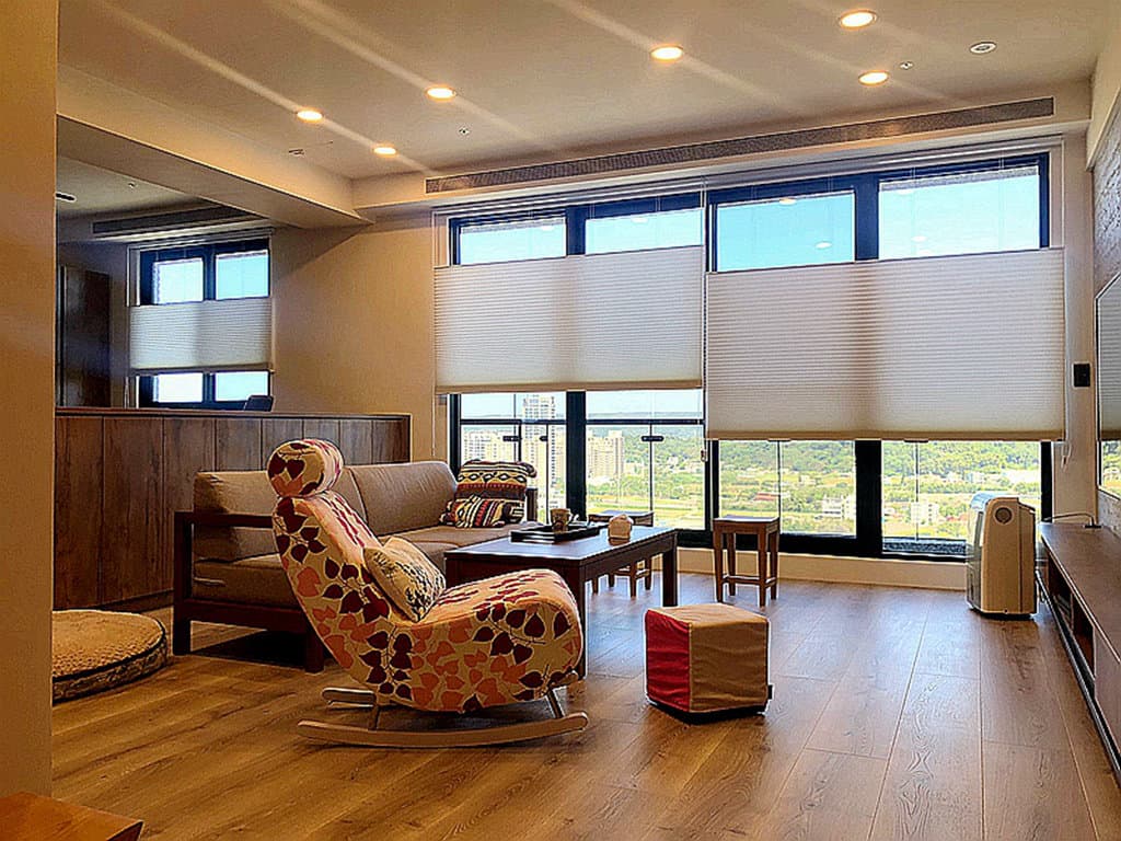 像這種窗型不建議作木百葉簾,風琴簾,因為上下開闔的速度較緩慢,這種情況下進出陽台會非常不便利,但如果是規劃電動產品就能改善這情況