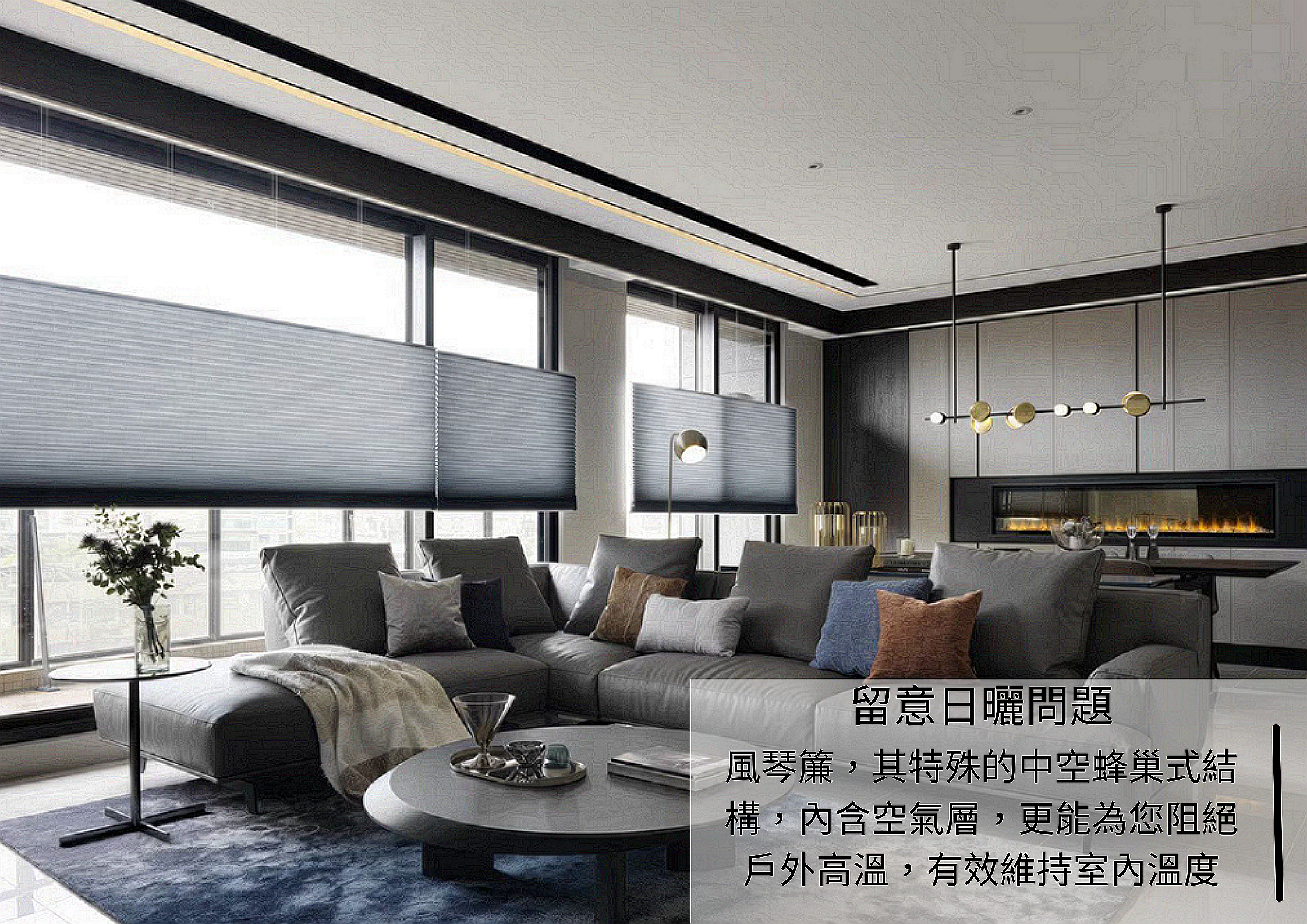 現代簡約質感風格 : 可選擇可上下移動的透光風琴簾