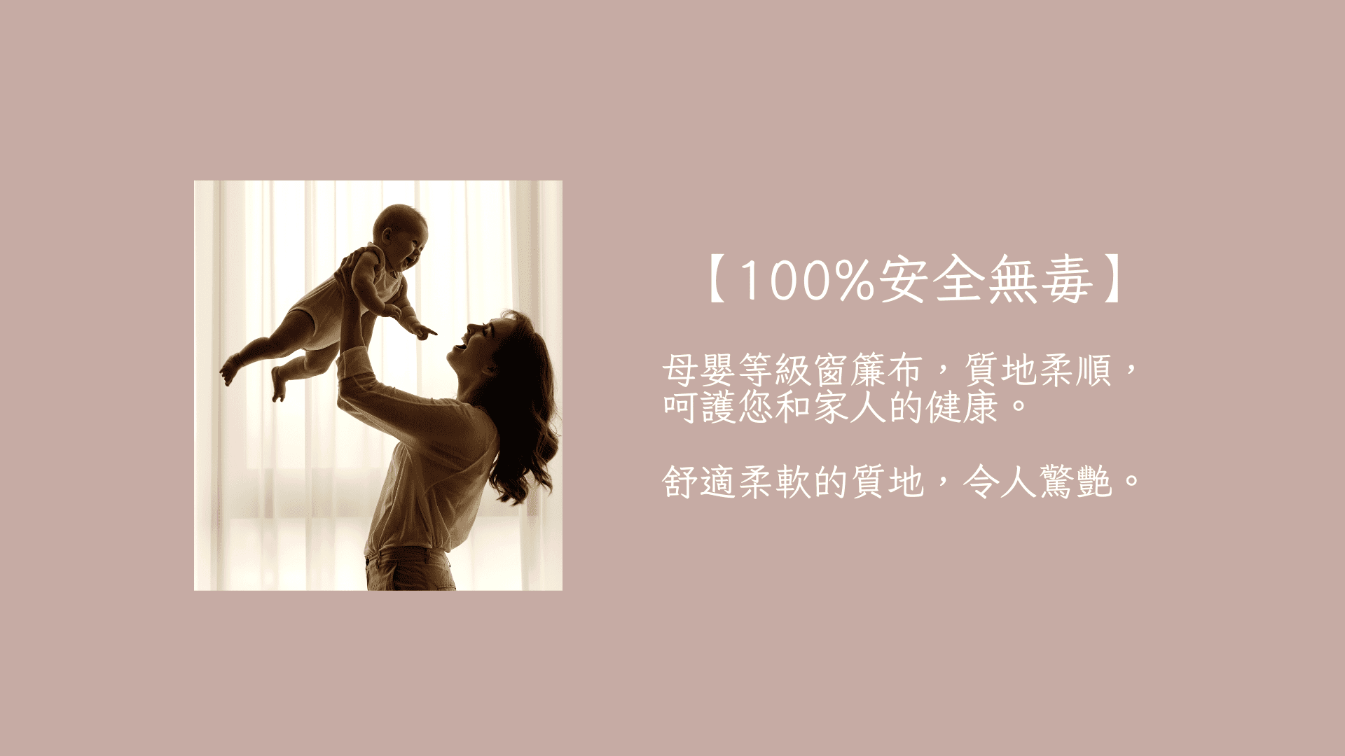 嬰兒級別的窗簾布,無毒安全,家中的寶貝或敏感肌膚也能享受舒適健康的生活