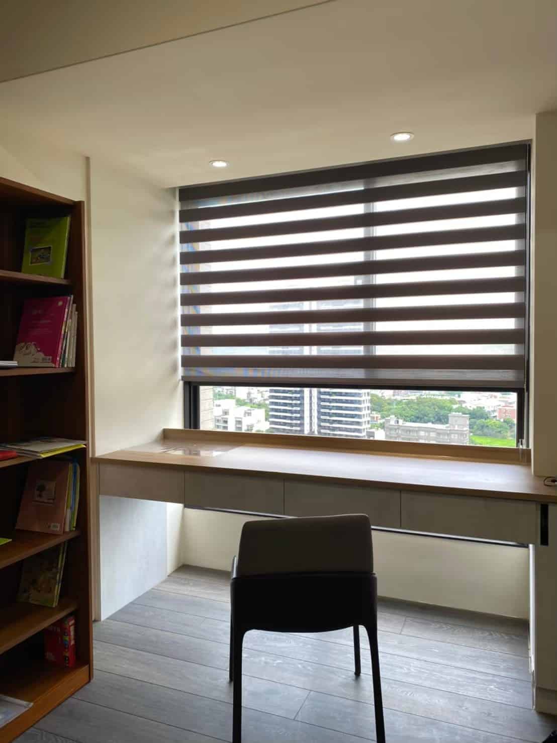 調光捲簾在色彩上的選擇也非常多,可低調溫馨,也可沉穩貴氣,特別適合需要有適度光線進入的空間,最常被運用在書房、工作室、遊戲房等。