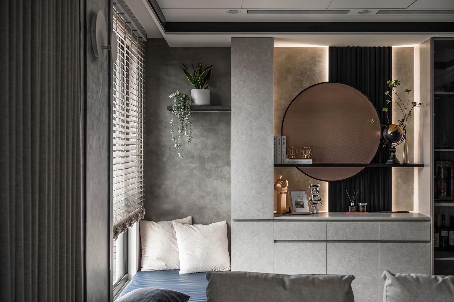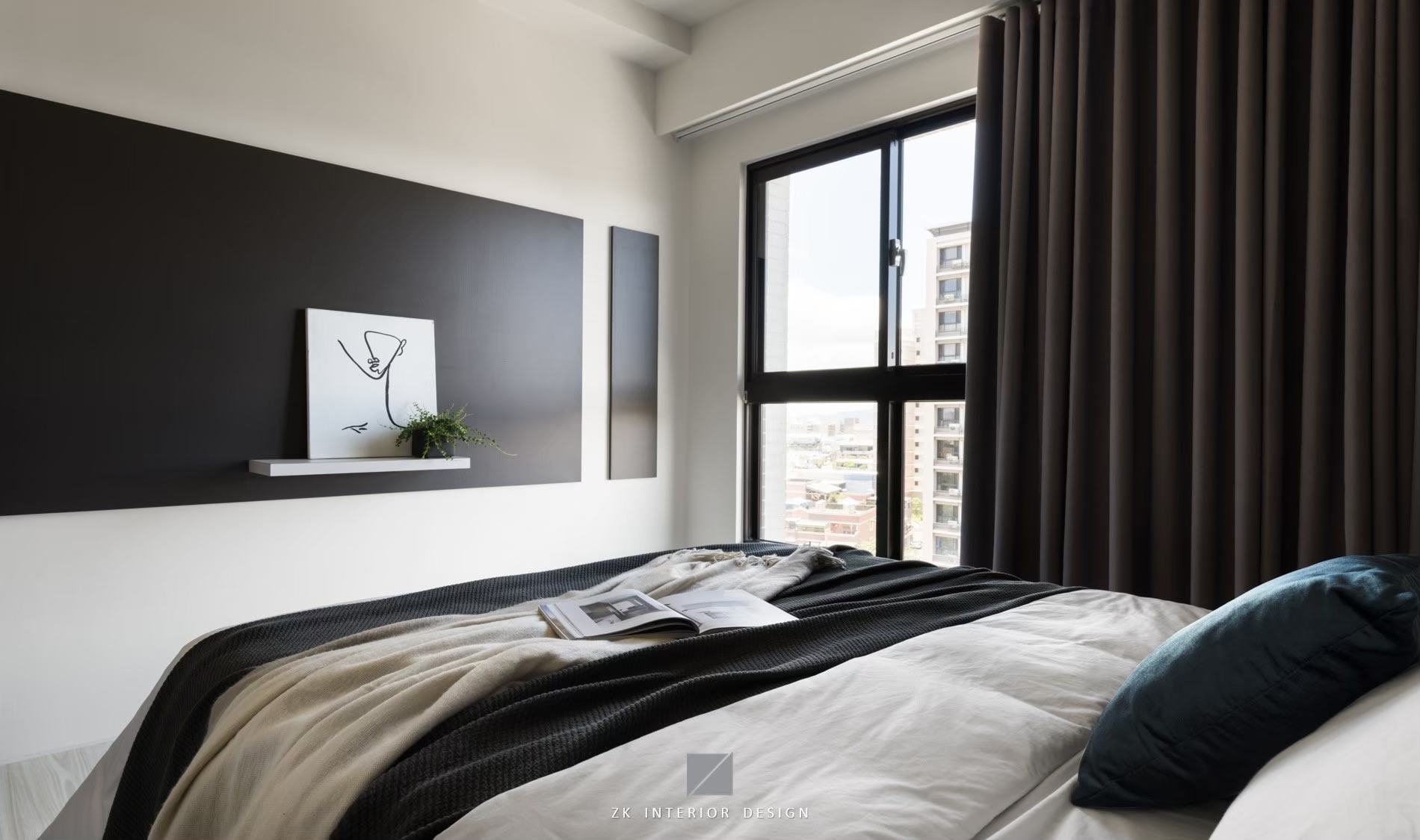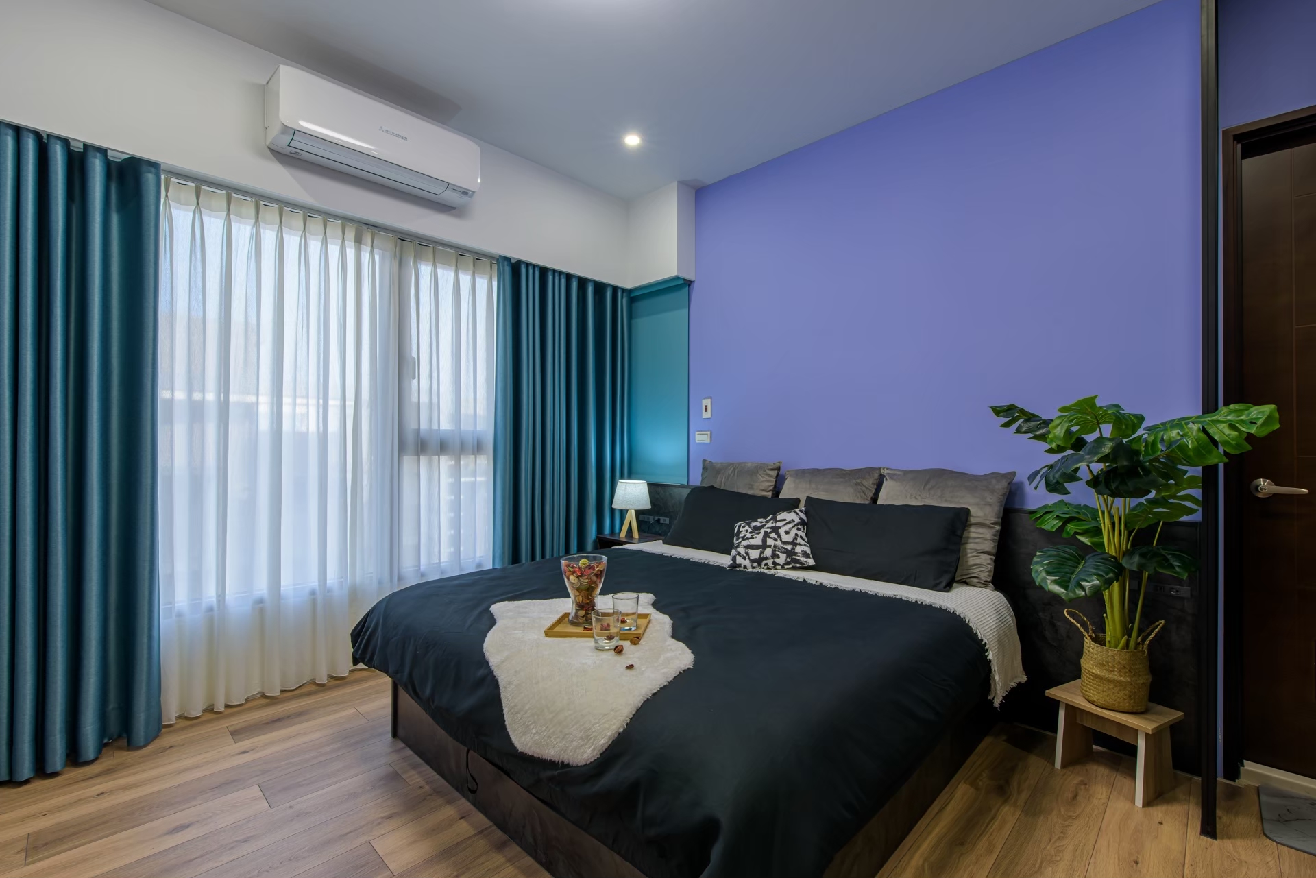 - 將布簾坐滿整面牆,降低漏光問題外更同時打造低調的奢華飯店風