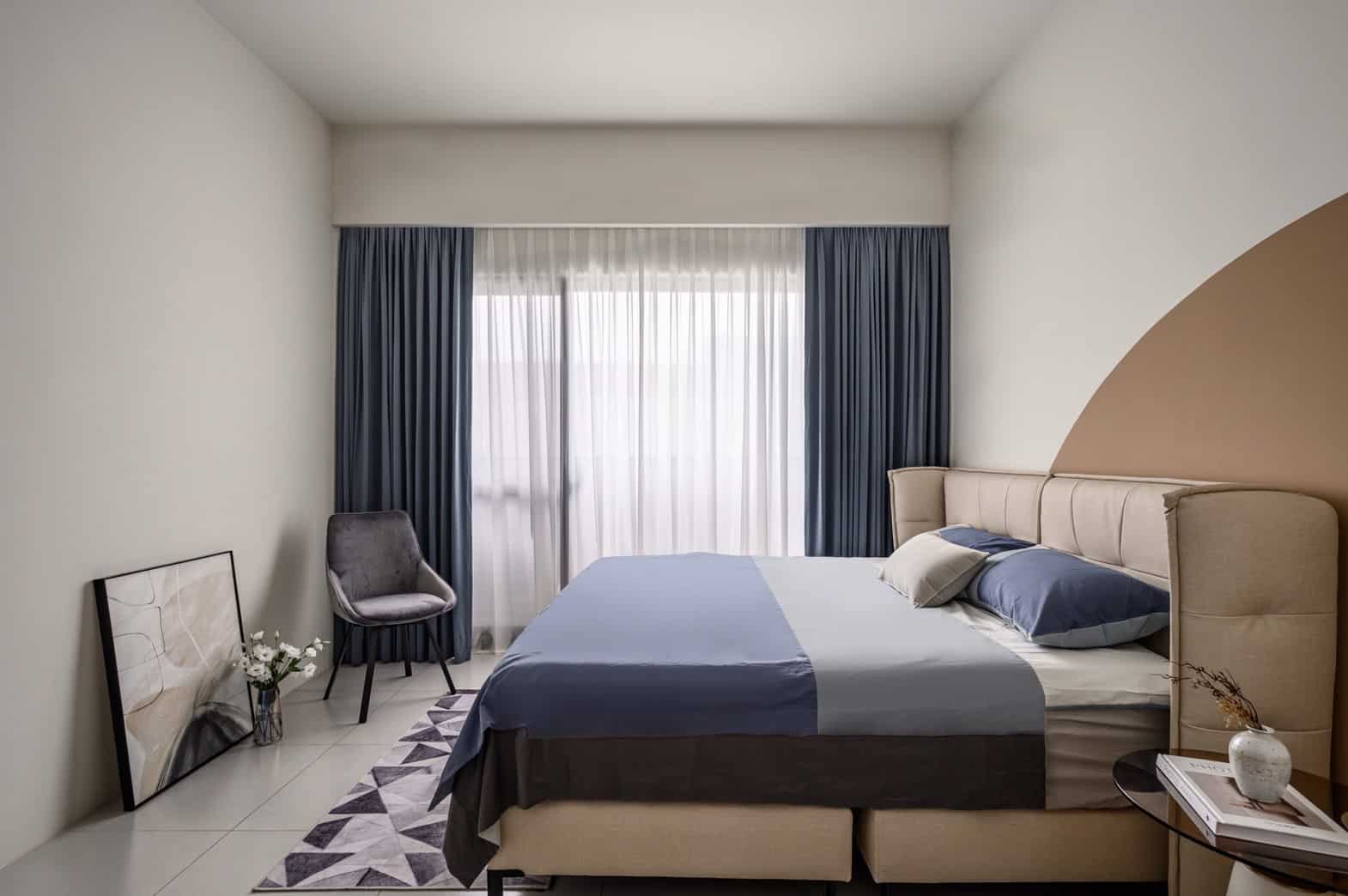 主臥窗簾款式: 進口棉麻窗簾布+進口雪紡紗簾